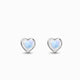 White Cherry Blossom Spring Flower •Silver Post Hearts Dangle Charm • Shiny White And Rose Floral Earrings • Crescent Shape Drop Earrings